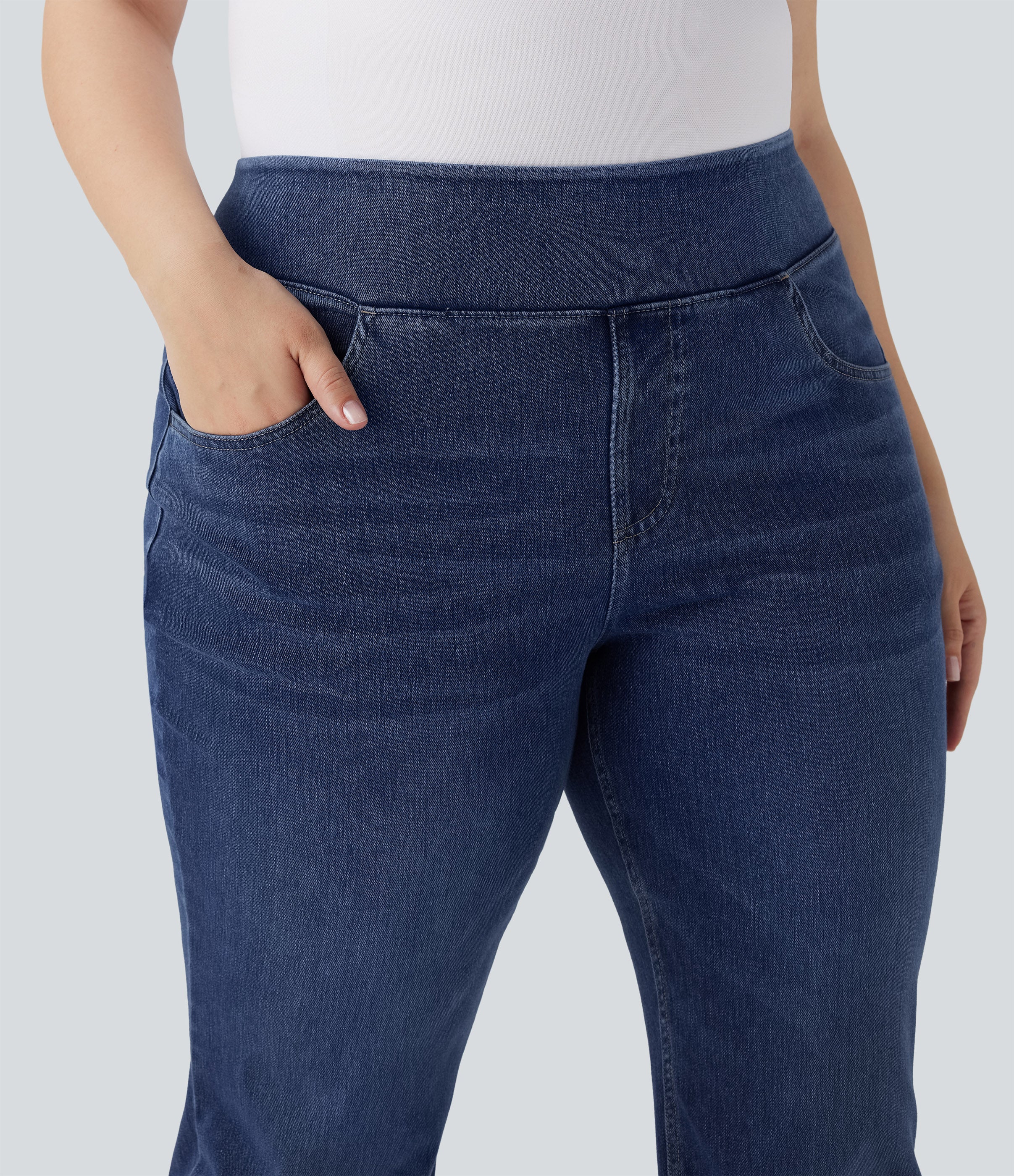 Halara FlexTM High Waisted Pockets Washed Casual Bootcut Plus Size Jeans