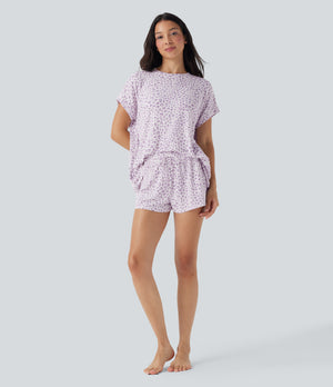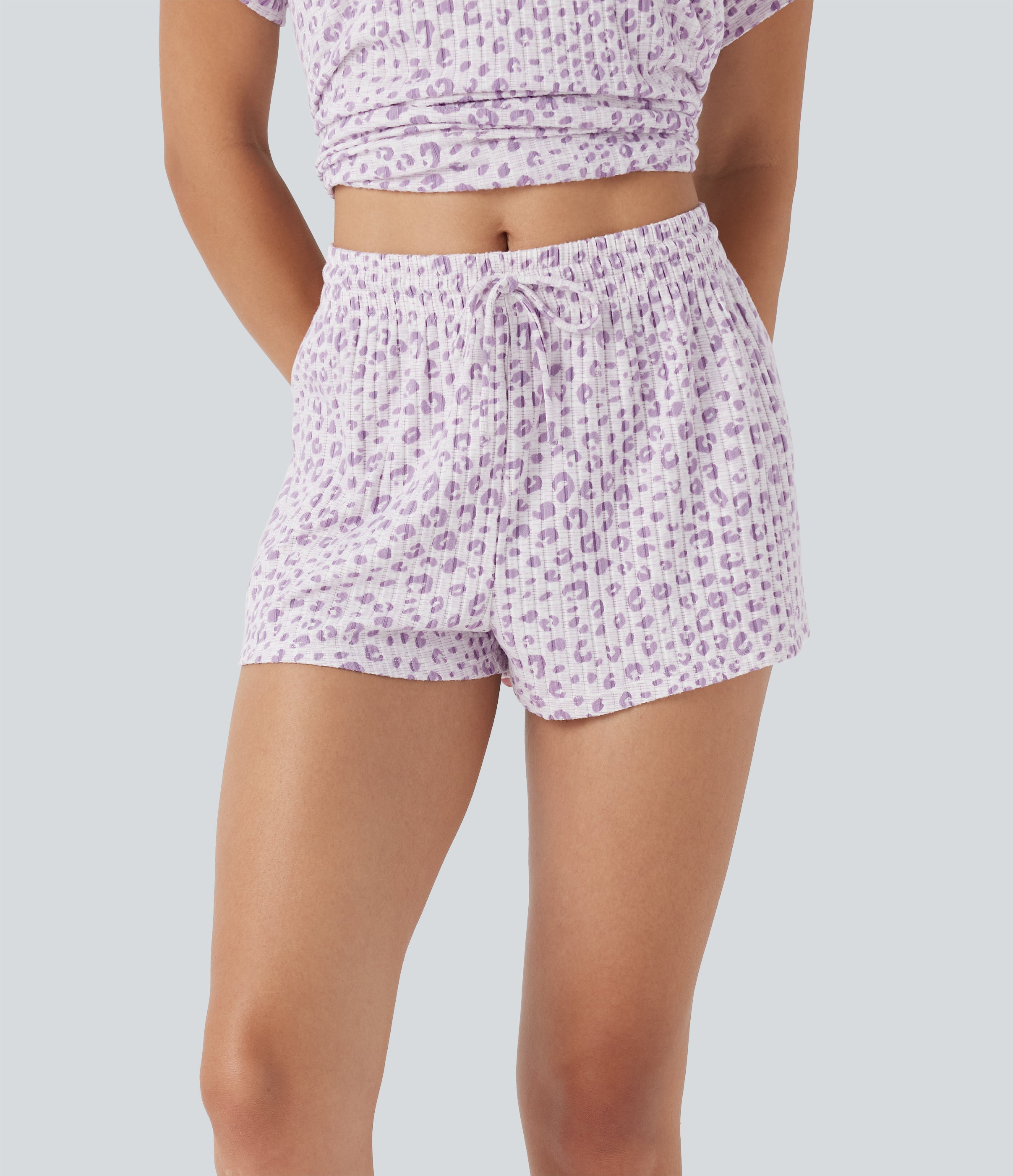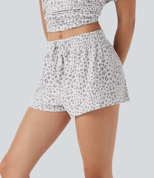 Mid Rise Drawstring Leopard Print Lounge Shorts 2''